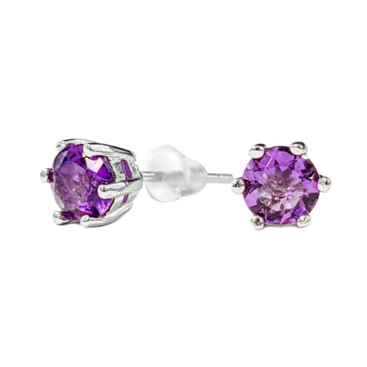 Boucles d'Oreilles Solitaire - Amethyste Facettée AA 5mm