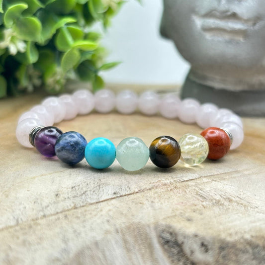 Bracelet 8mm - Quartz Rose 7 Chakras