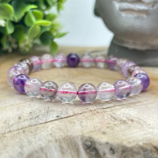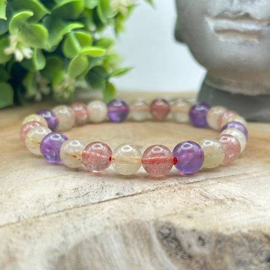 Bracelet 8mm - Améthyste, Quartz Rutile et Quartz Fraise