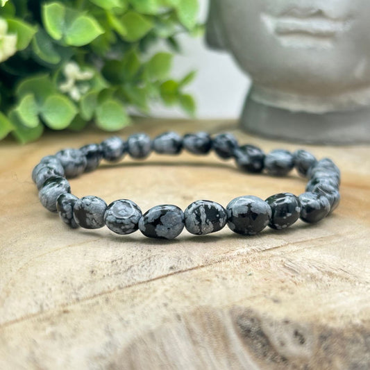 Bracelet Pierres Roulées - Obsidienne Flocon de Neige