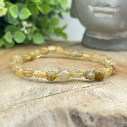 Bracelet Pierres Roulées - Quartz Rutile et Cristal de Roche