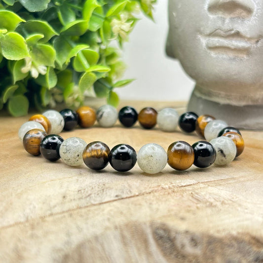 Bracelet 8mm - Labradorite, Œil de tigre et Onyx