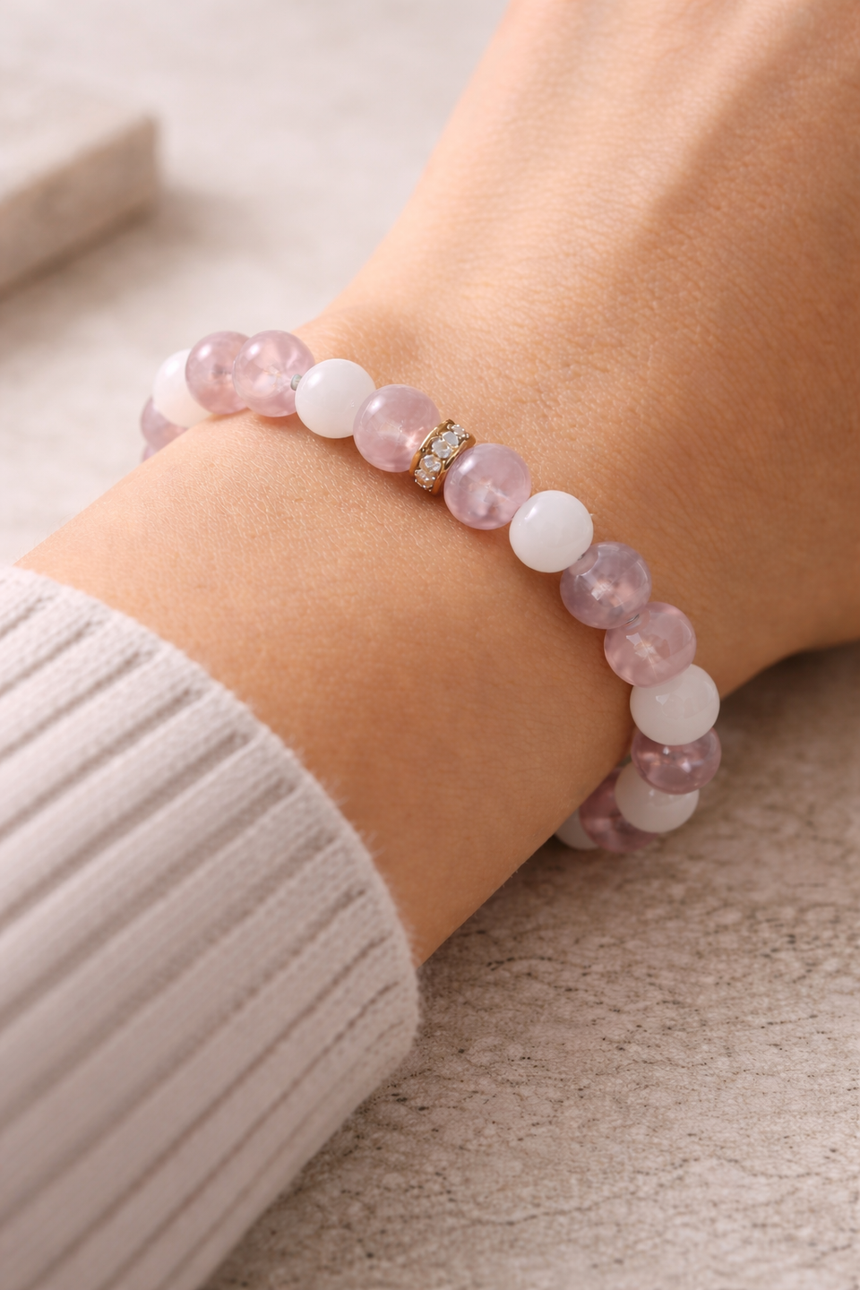 Cédric L.Vérifié ✔️Une pierre aux couleurs rosâtres et blanche magnifique ! Le bracelet passe partout il sert vraiment bien le poignet. Lié au chakra du coeur je sais que je le recommanderais a quiconque. Livraison rapide hâte de repasser commande :)