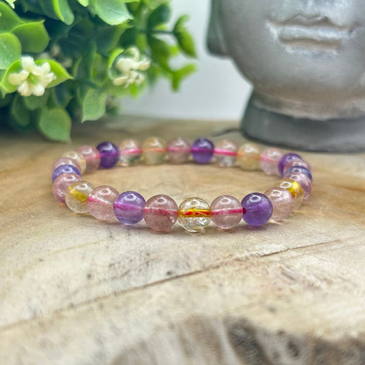 6mm Bracelet - Amethyst, Rutile Quartz and Strawberry Quartz