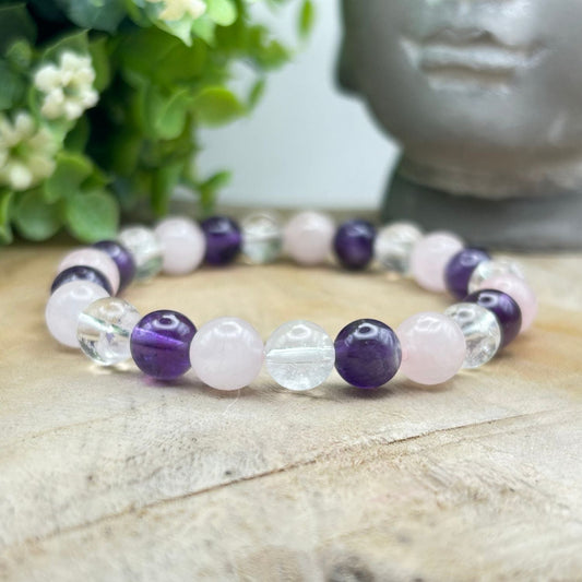 8mm bracelet - Amethyst, Rock crystal and Rose quartz